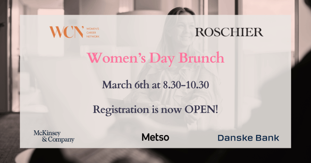Menestys ei synny yhdestä mallista – se rakennetaan omista arvoista, valinnoista ja rohkeudesta. Kuulemme panelisteilta, miten he ovat luoneet oman näköisensä polun ja mitä menestyminen heille merkitsee. Paneelikeskusteluun osallistuvat: Heidi Valle (VP, Communication and Public Affairs, Metso), Susanna Tulokas (Associate Partner, McKinsey), Sari Takala (Head of Advisory Support and Implementations, Danske Bank) sekä Kiira Tuohimaa-Leisio (Partner M&A, Roschier). Keskustelun moderoi WCN:n puheenjohtaja Iida Paussoi.