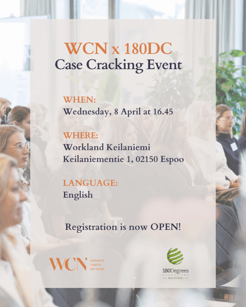 Women’s Career Network and 180 Degrees Consulting warmly invite women and non-binary people interested in consulting to join a case-cracking competition, with no prior experience required. 🧡